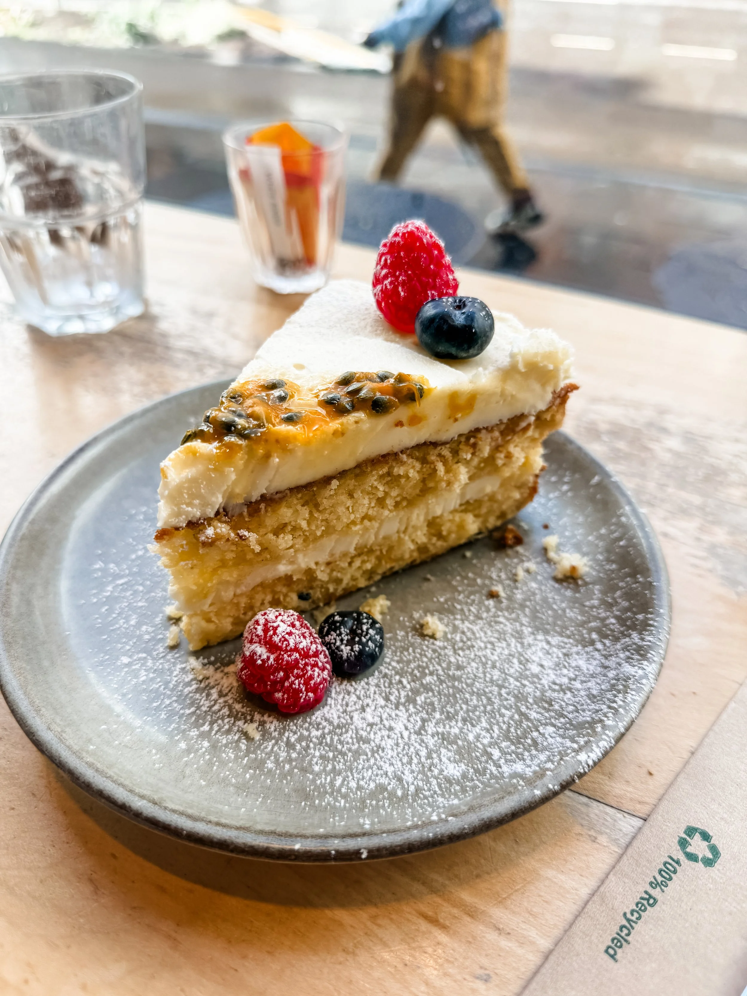 After checking in, breakfast and a nap we headed over to Byres Road where there’s all kinds of cafes, shopping, etc. We went into Kember and Jones for a light lunch and it was so good! I got a soup, my husband eggs, and Lincoln a scone because he wanted to experience scones with jam and butter. We finished things off with a decadent Passionfruit and Coconut gluten free cake that I am still thinking about. We then shopped around, the most notable store being Finnieston where my husband got a fantastic wool shacket made with local Scottish wool.