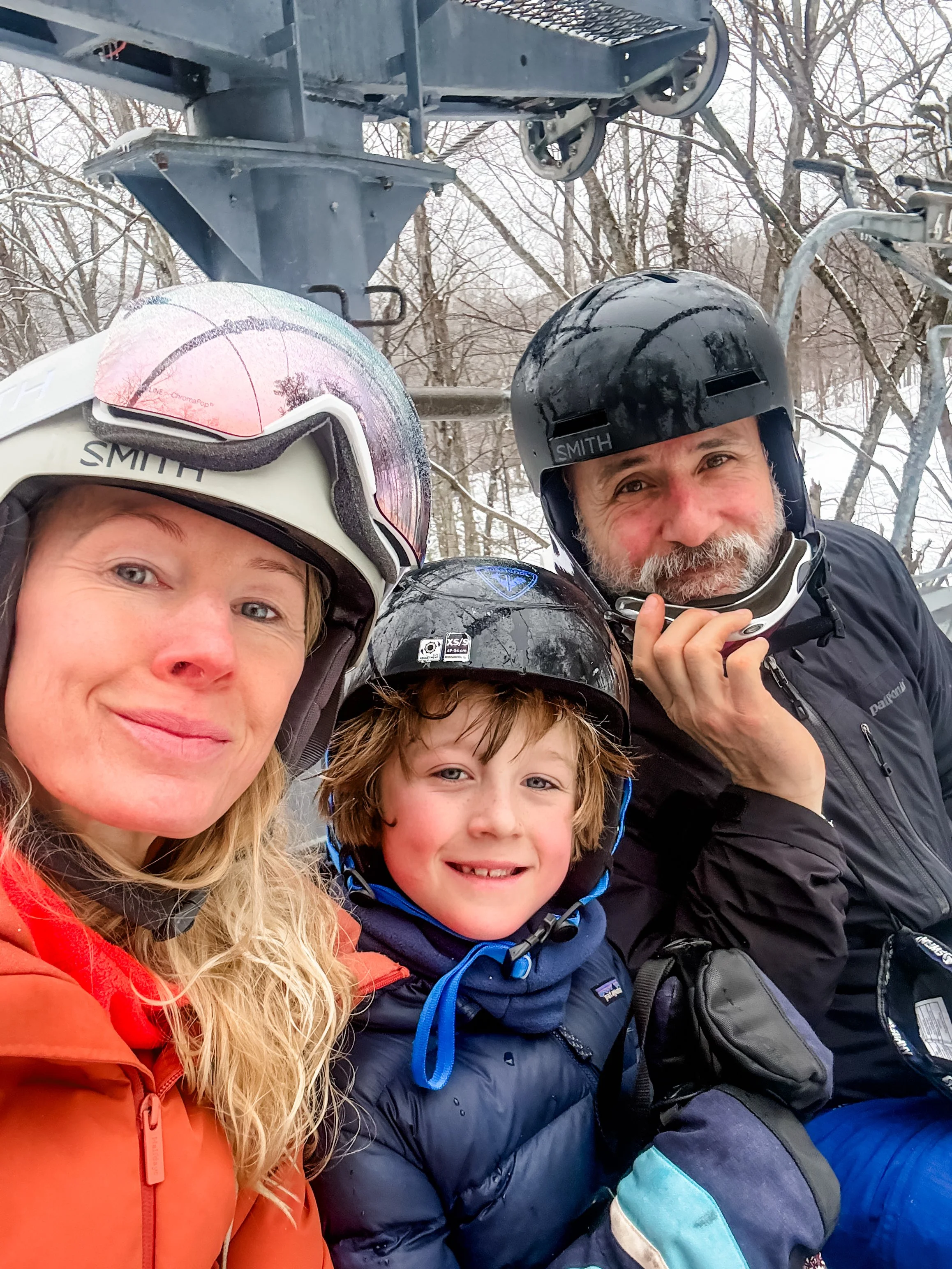 I booked 2 days of lift tickets and ski rentals at Catamount Mountain Resort. We got there shortly after they opened at 8am and it was a breeze to pick up our ski rentals. My husband and I have invested in helmets, goggles and ski boots from SureFoot but have opted to keep renting skis. Obviously for our son we rent everything since he’s still growing and we go 1x a year. We hit the bunny slopes, then made our way up the mountain to various green runs. The mountain was never packed which was great considering we are beginner’s.