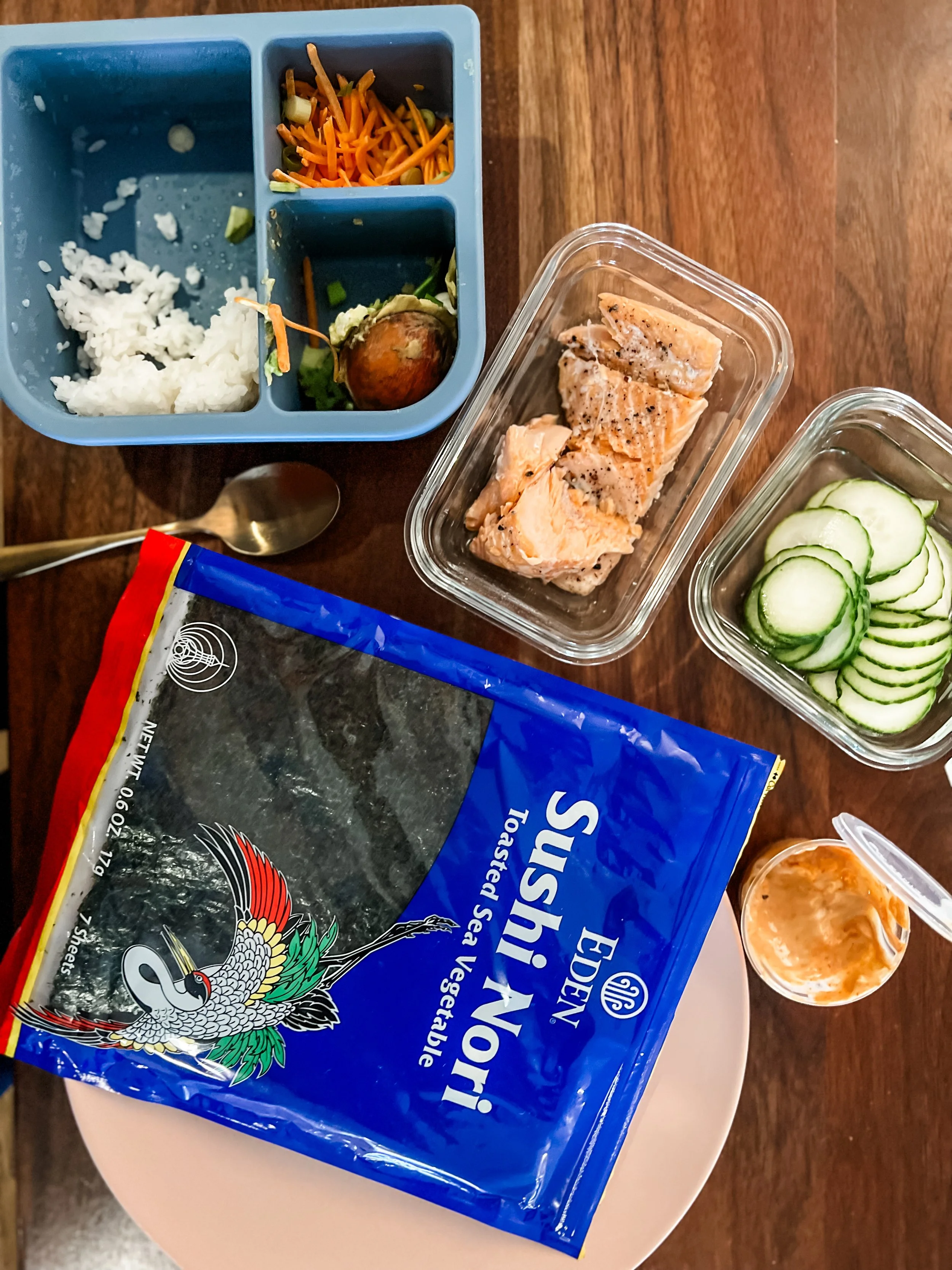 And it turned out so good! Over the years I’ve watched endless food videos on social media. At some point I know things like this have come across my way. I had left over salmon the other night and it occurred to me that I have everything to make a nori rice wrap of sorts. I can’t wait to have leftover salmon again for another repeat of this kind of lunch! Keep reading for the scoop.